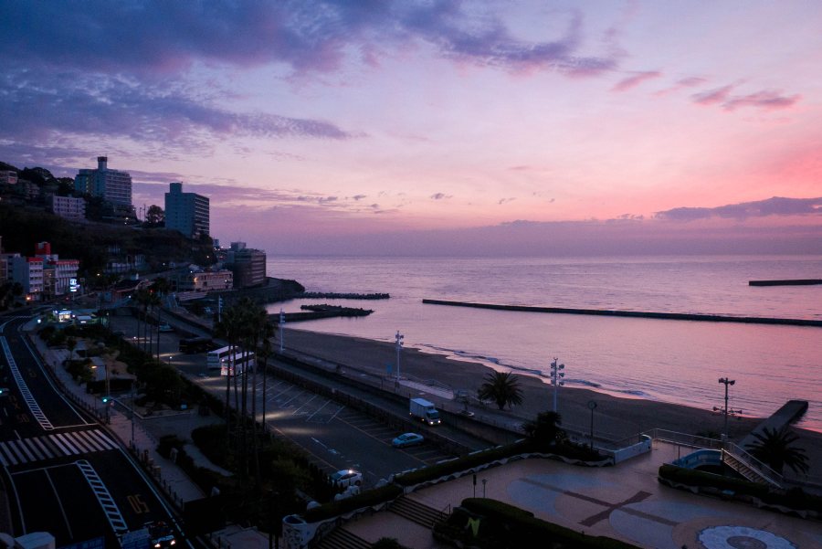 熱海市内をブラブラと歩いて下って海際の宿にチェックイン。