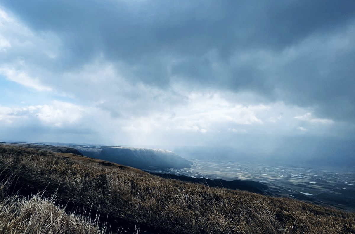 草千里を横目に山を一気に下る。すごいなと思ったのは、阿蘇山から北におりてくると