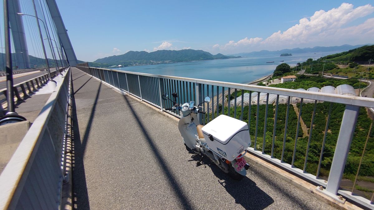 しまなみ海道はバイクと景色でおなかいっぱい。灼熱の中の塩ソフトが美味かった。