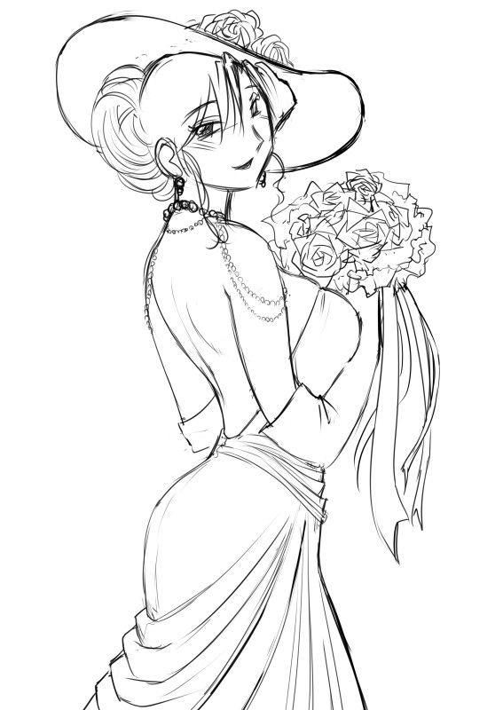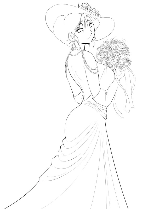 描いた表紙絵のラフと清書。なつかしいなあ。ウェディングぽいものを、と言われたので