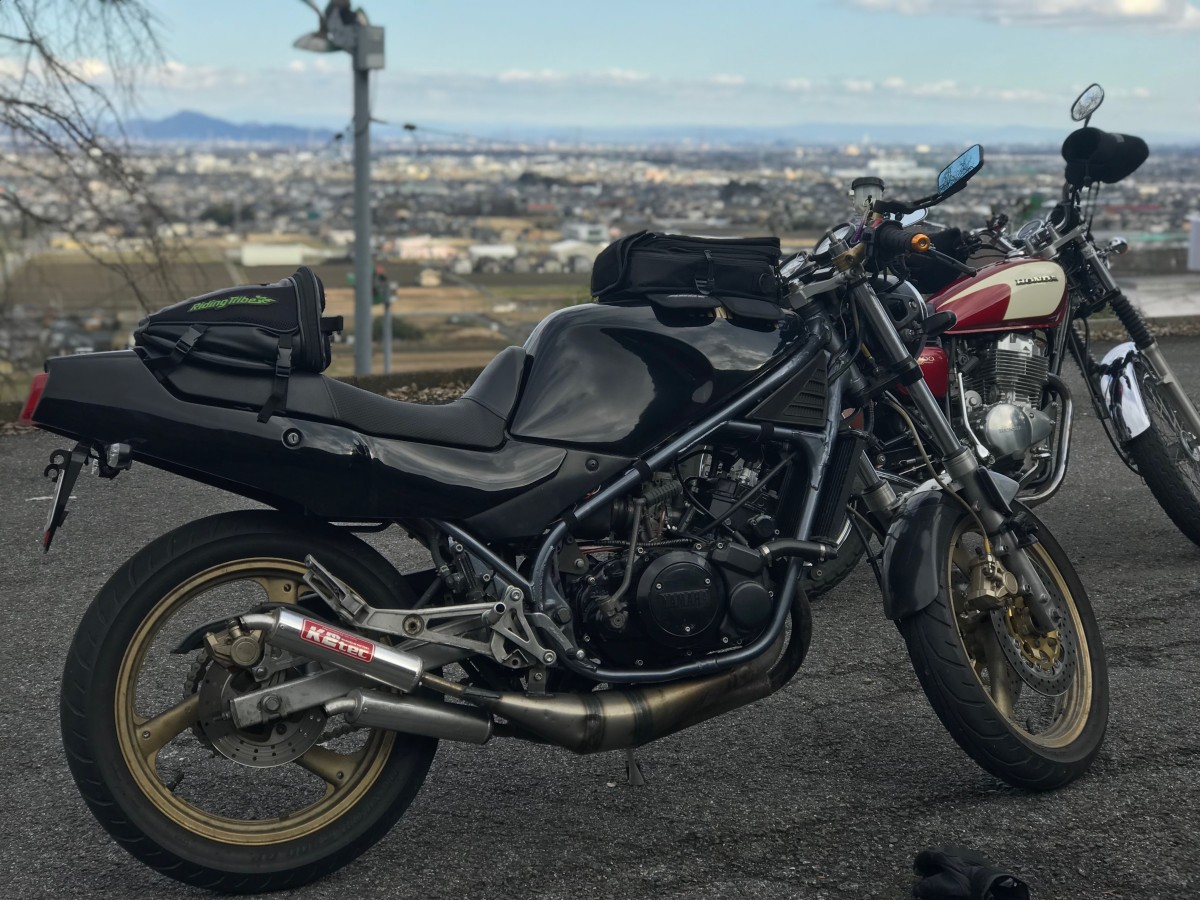 奥のCB400SSがたくろうさんのバイク。