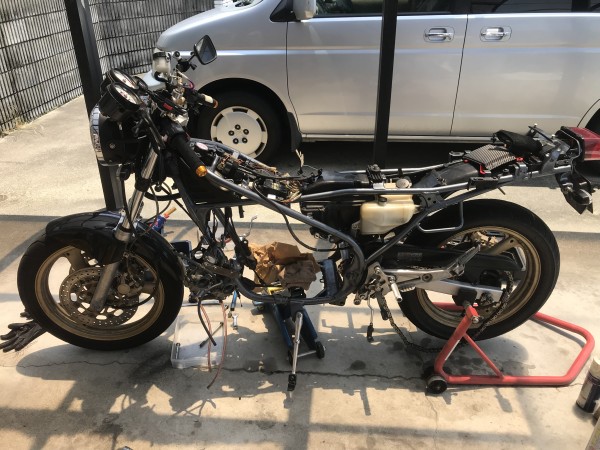 そうそう、愛車RZのエンジンをバラバラにしちゃっておなかスカスカになっちゃって。