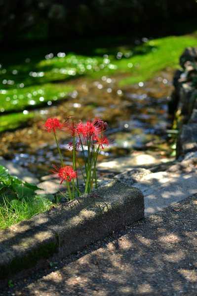 道中彼岸花だらけだ。醒ヶ井の地蔵川沿いにもあちらこちらに彼岸花。なぜかもう枯れかけてたな。
