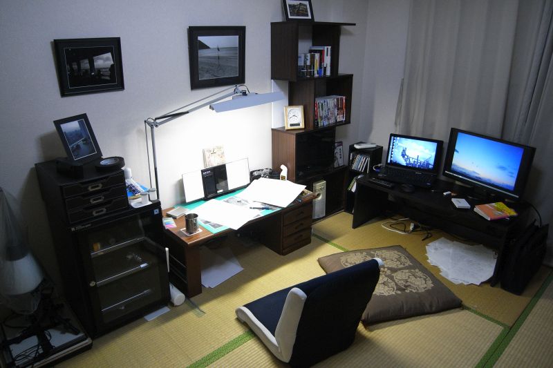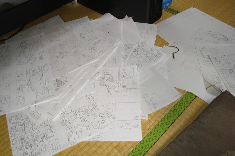 右側のテーブルの下にはネームの残骸がある。