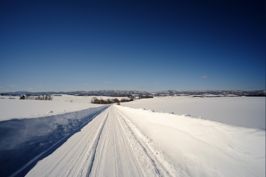 キャンピングカーで移動し、吹雪に遭い